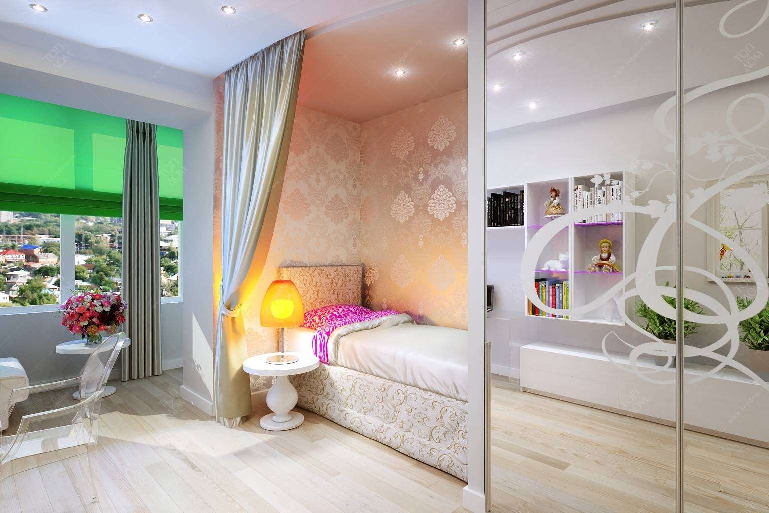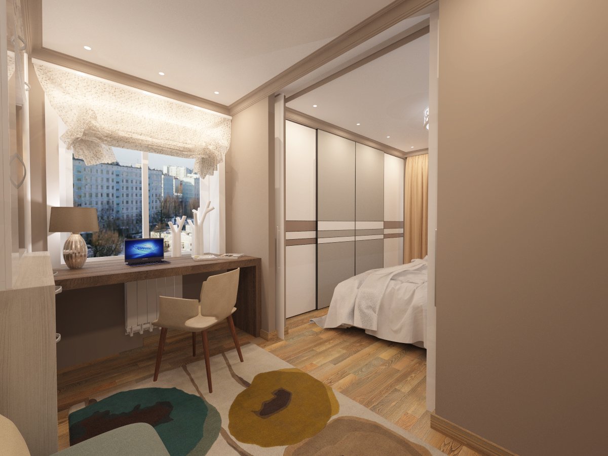Зонирование комнаты с балконом
