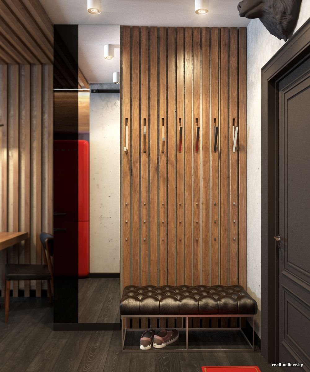 Прихожая с рейками на стене