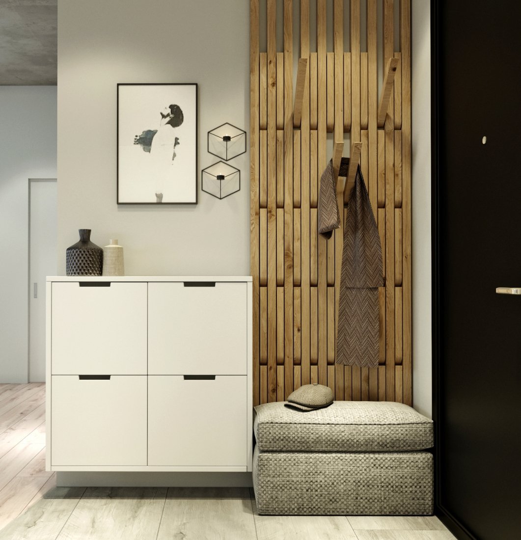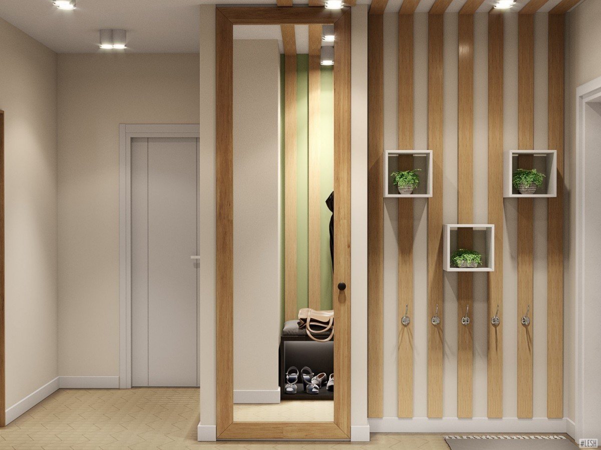 Прихожая с деревянными рейками