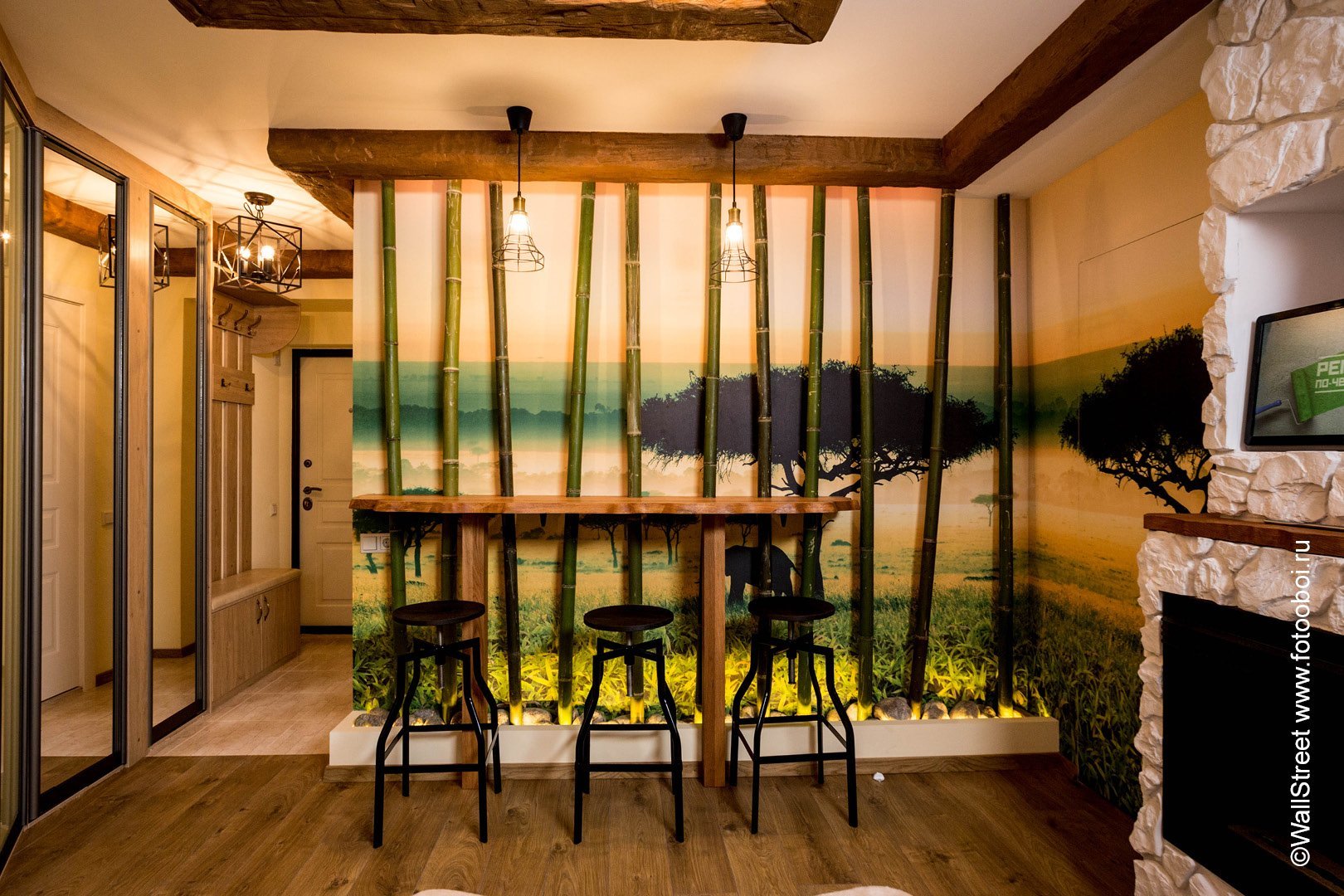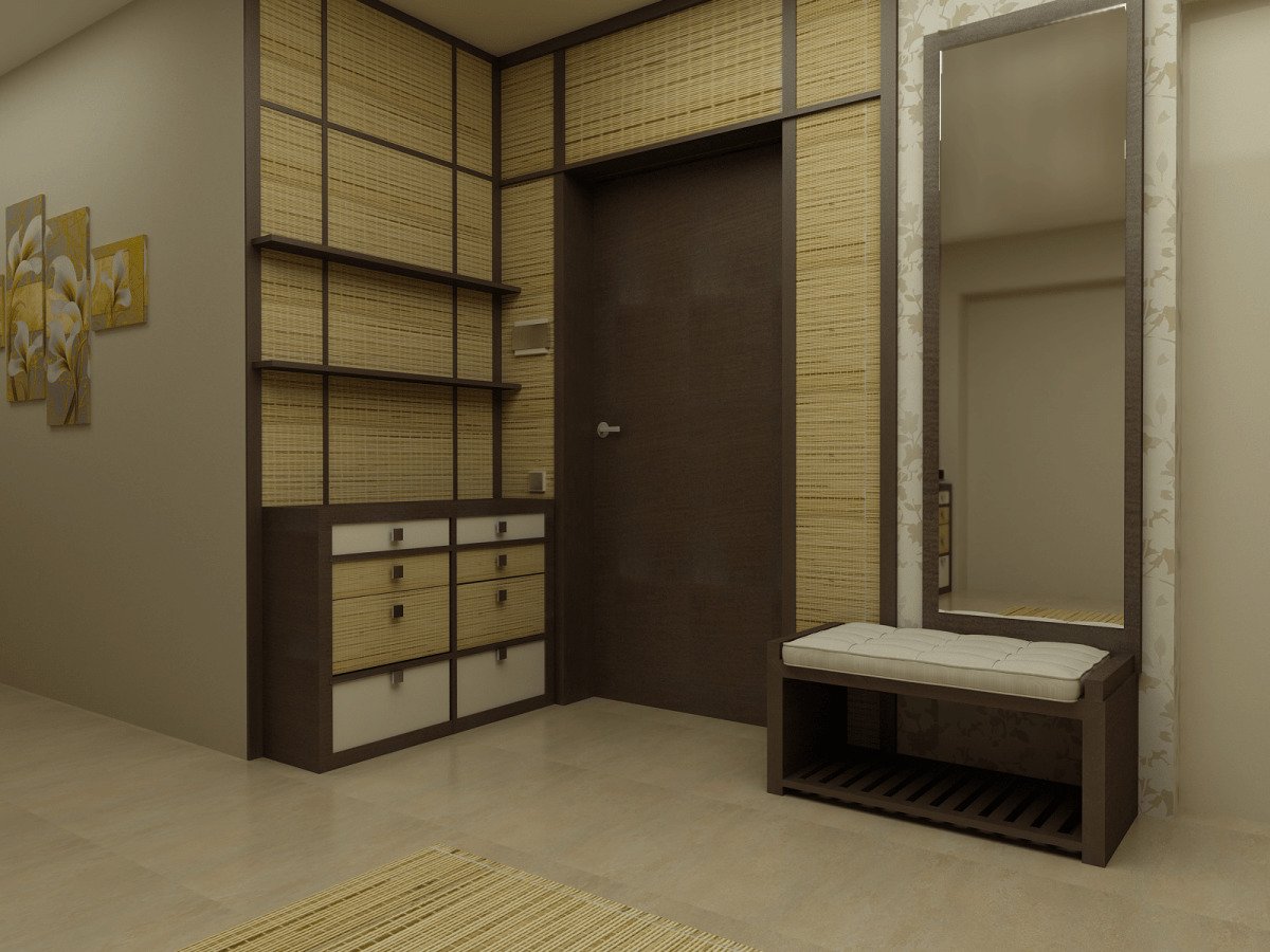 Прихожая с бамбуковой отделкой
