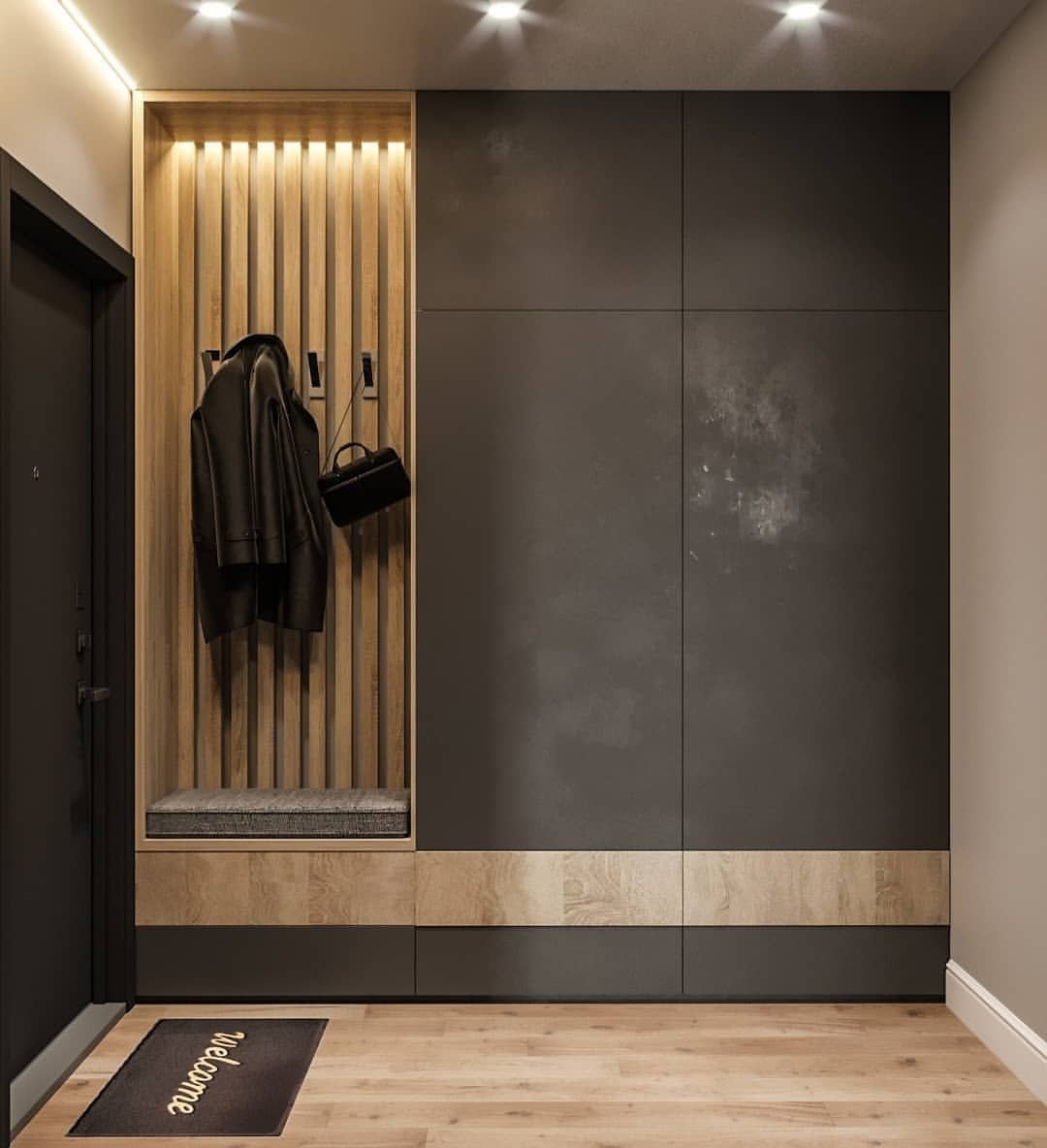Современная прихожая с рейками