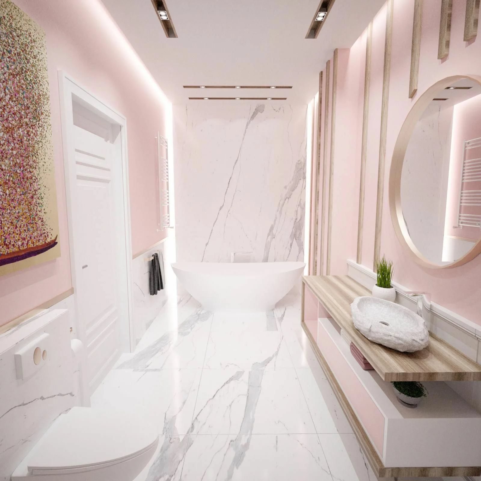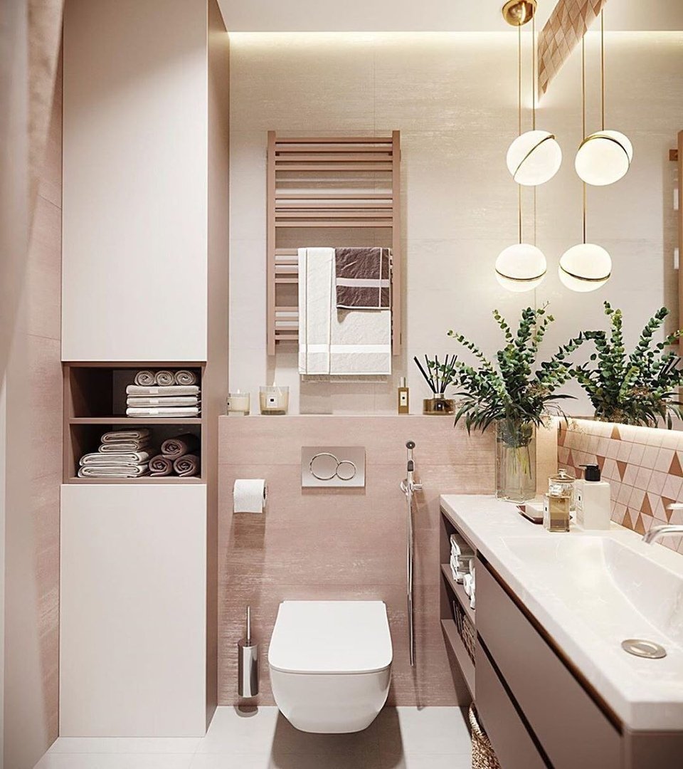Ванная комната в пудровых тонах