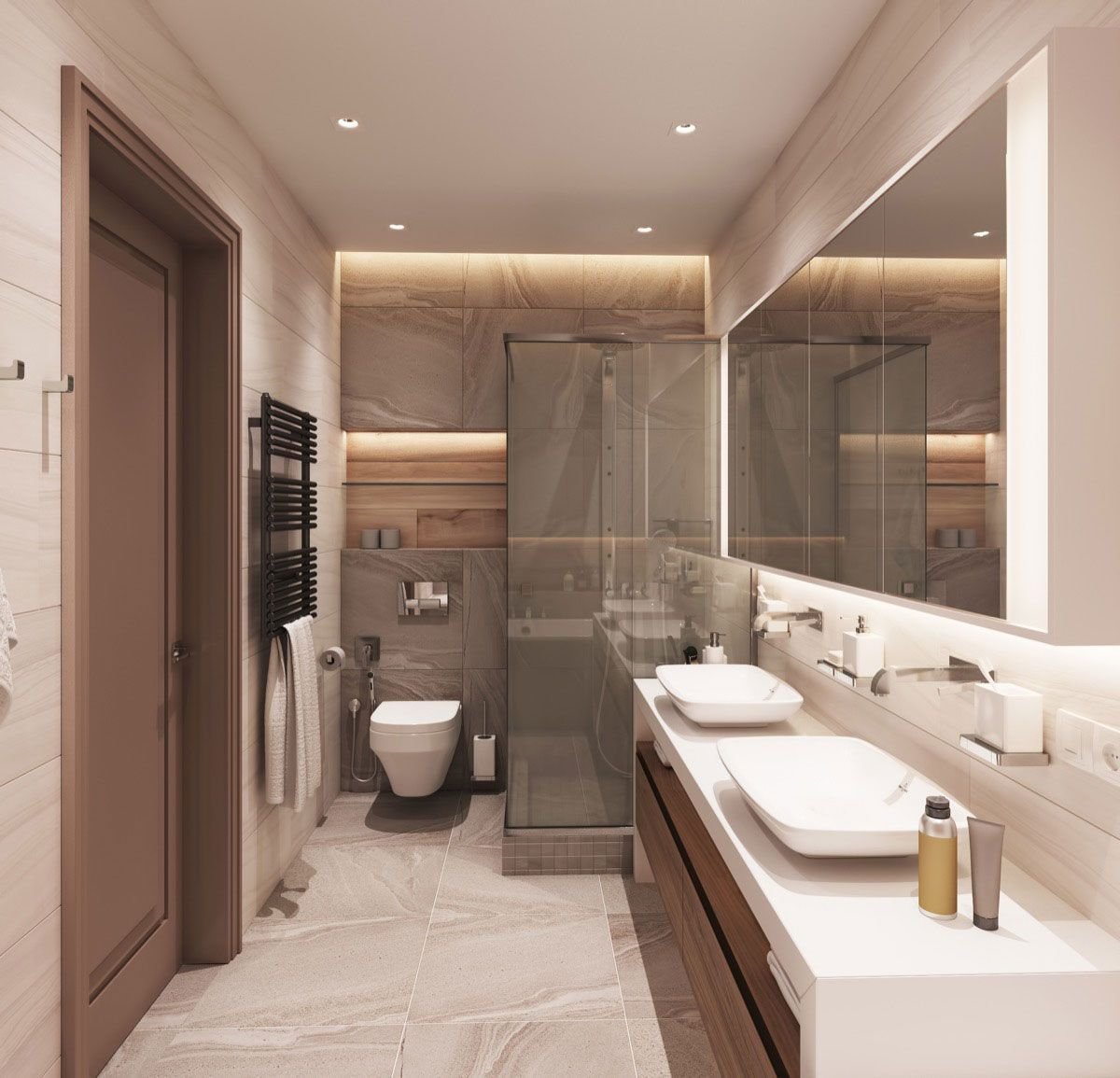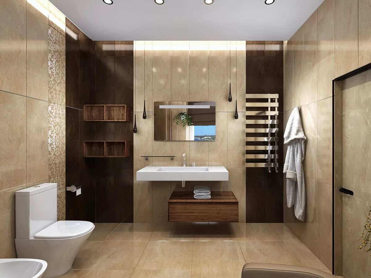 Ванная в коричнево-бежевых тонах