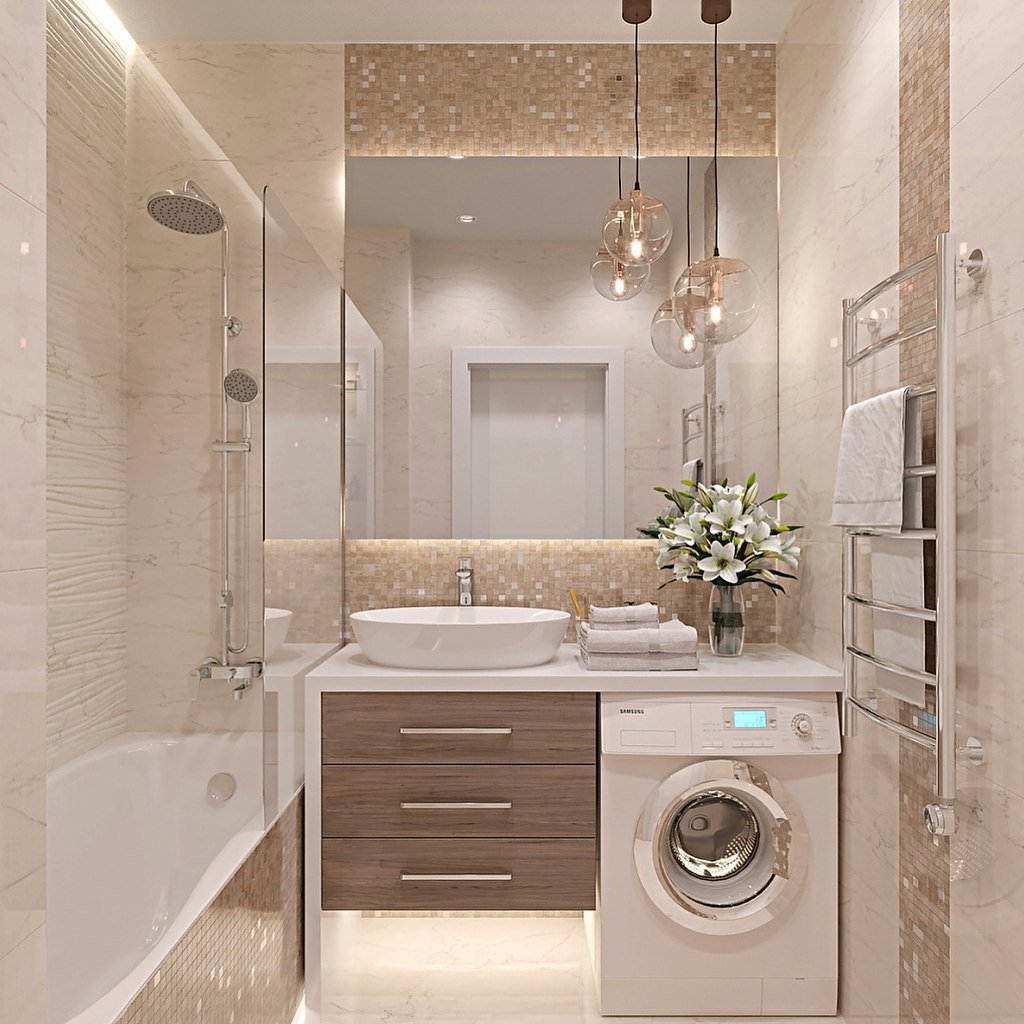 Интерьер маленькой ванной комнаты 2020