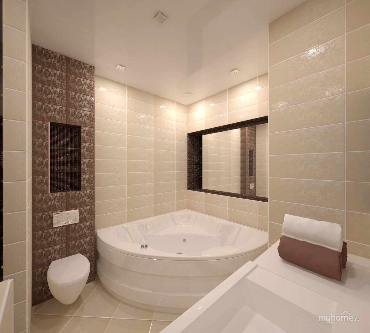 Интерьер ванной комнаты в бежево коричневых тонах