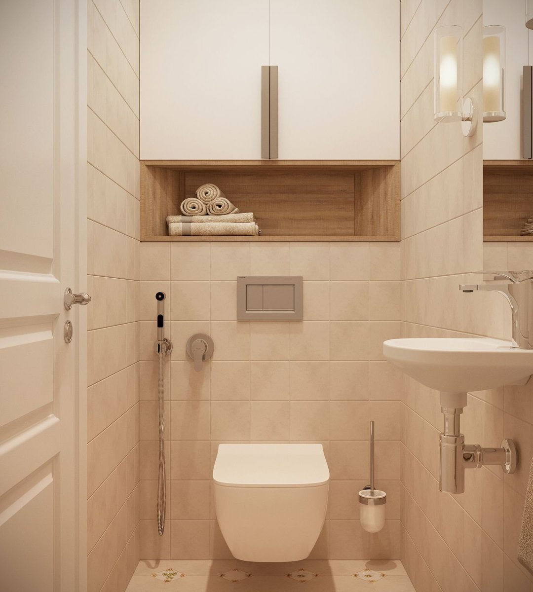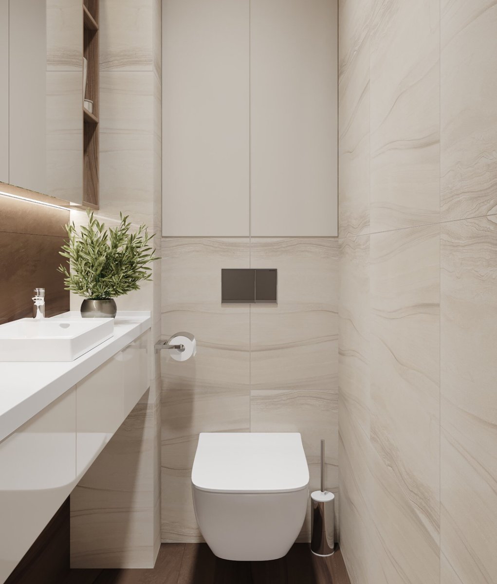 Дизайн туалета в бежевых тонах