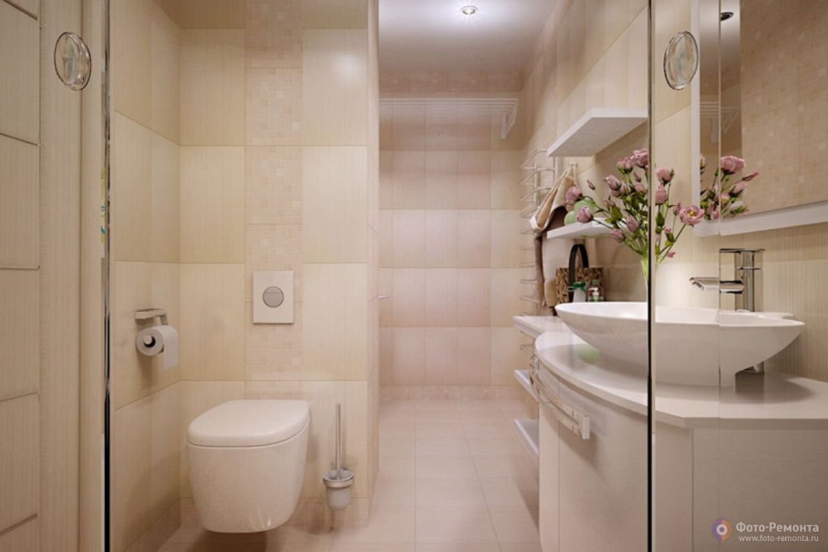 Ванная в бежевых тонах маленькая