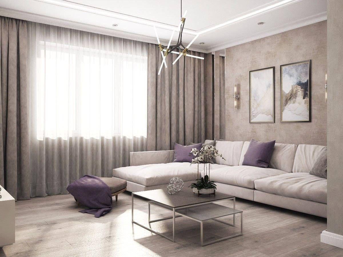Гостиная в серо фиолетовых тонах