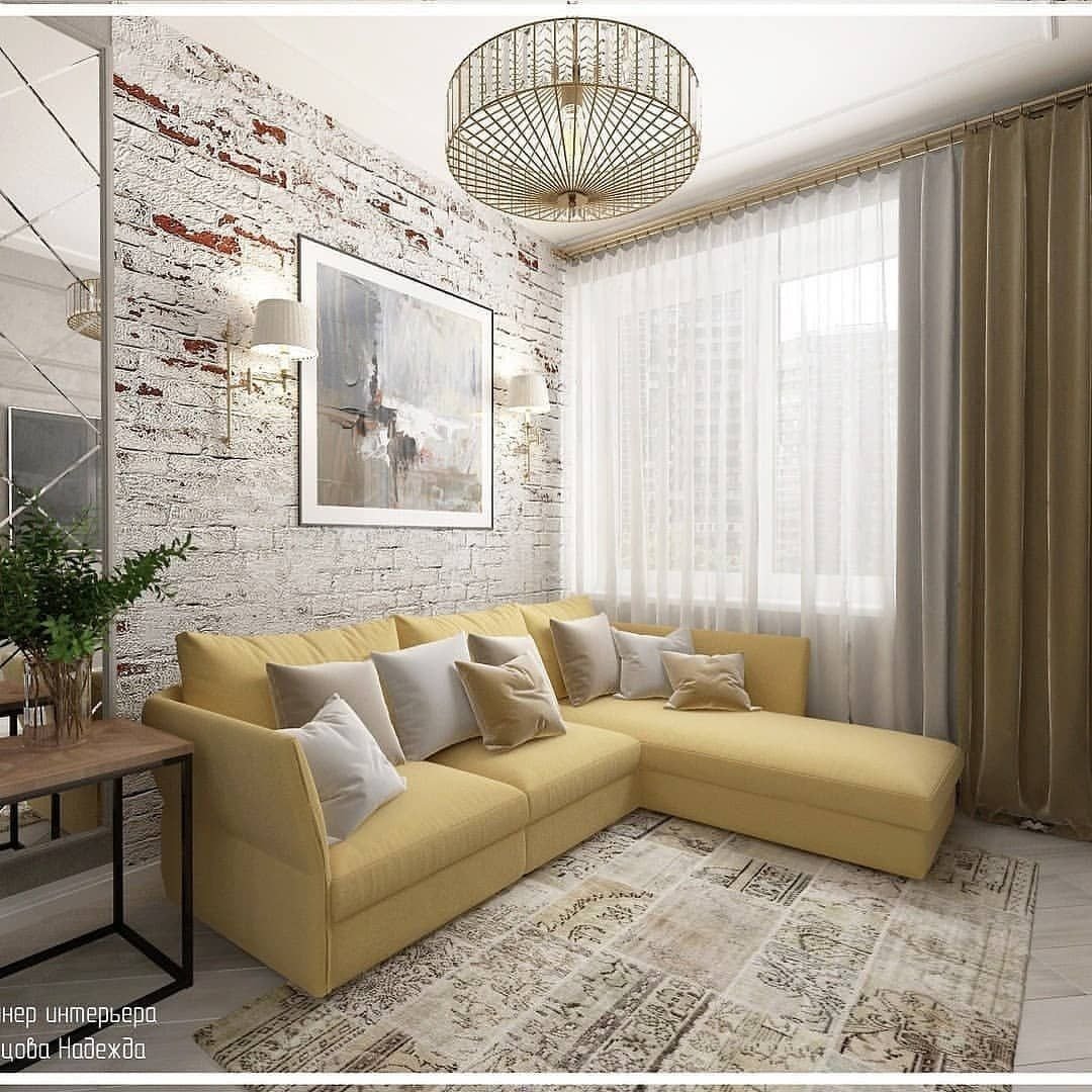 Квадратная гостиная 17м2 интерьер