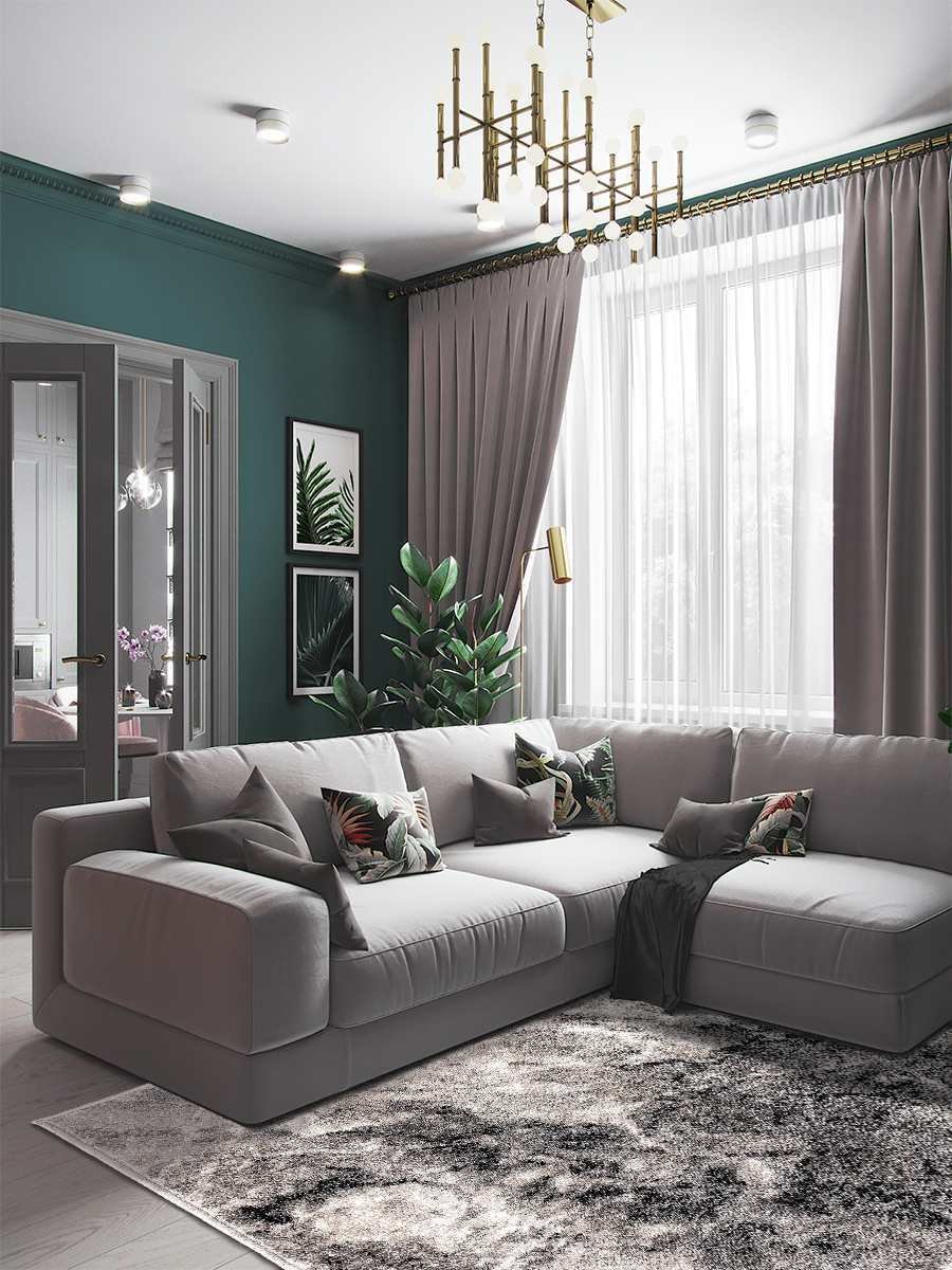 Интерьер комнаты с угловым диваном