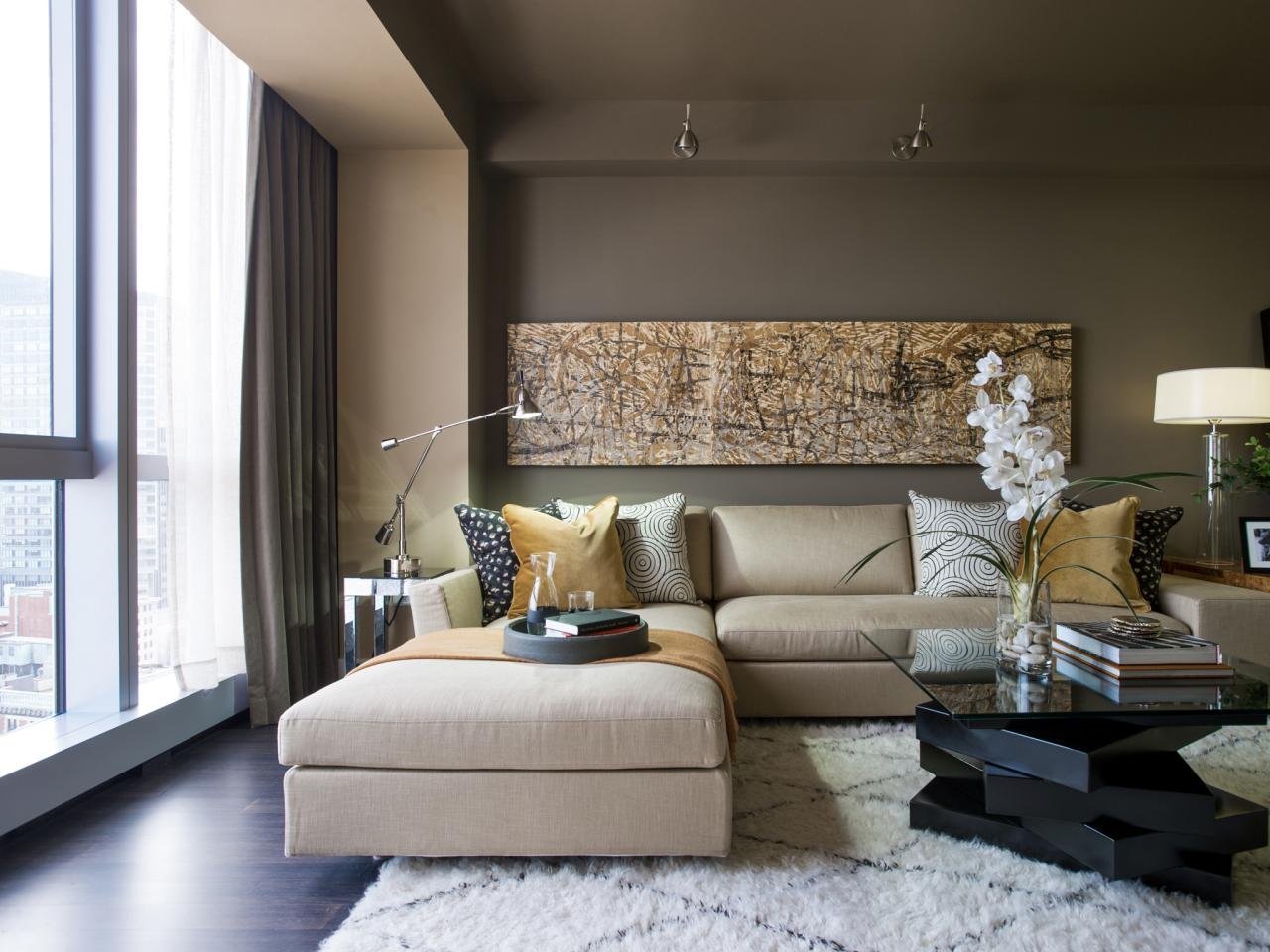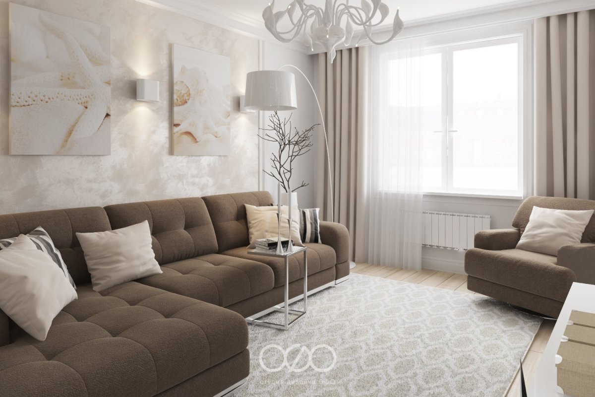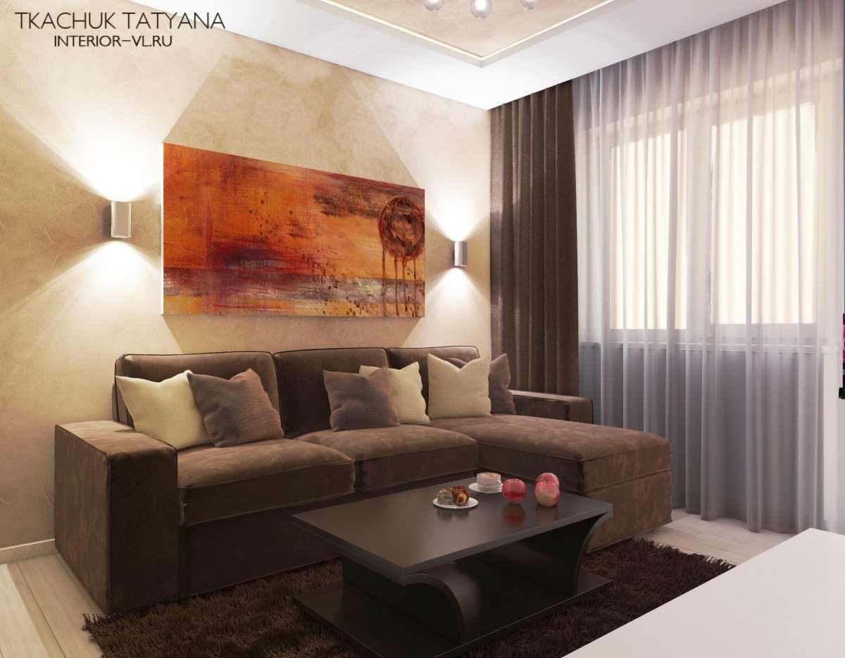 Гостиная в бежево коричневых тонах