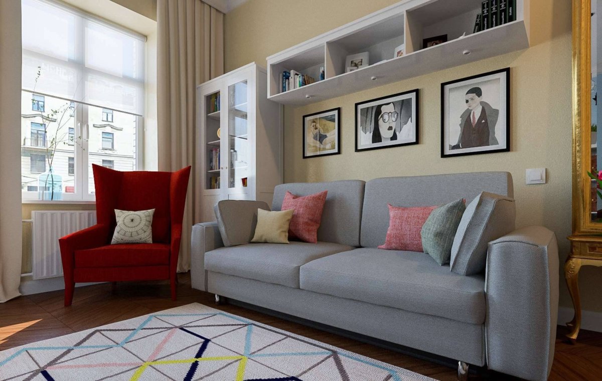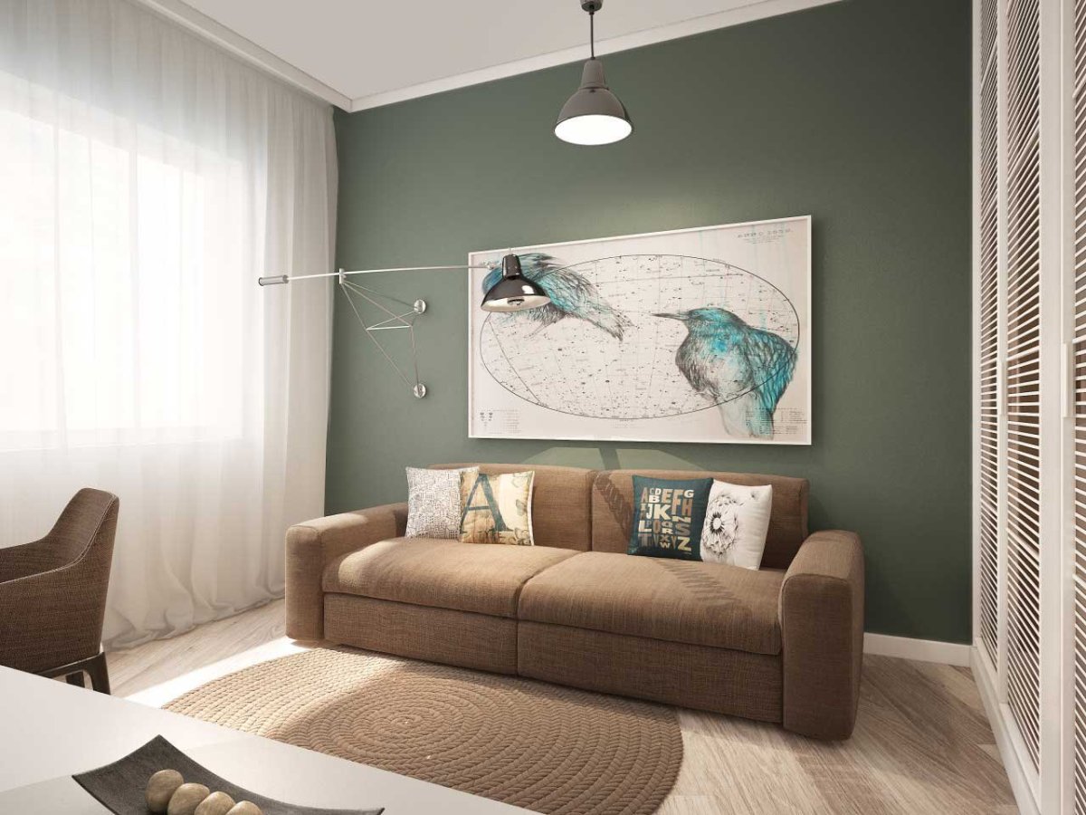 Интерьер комнаты 15 кв.м с диваном