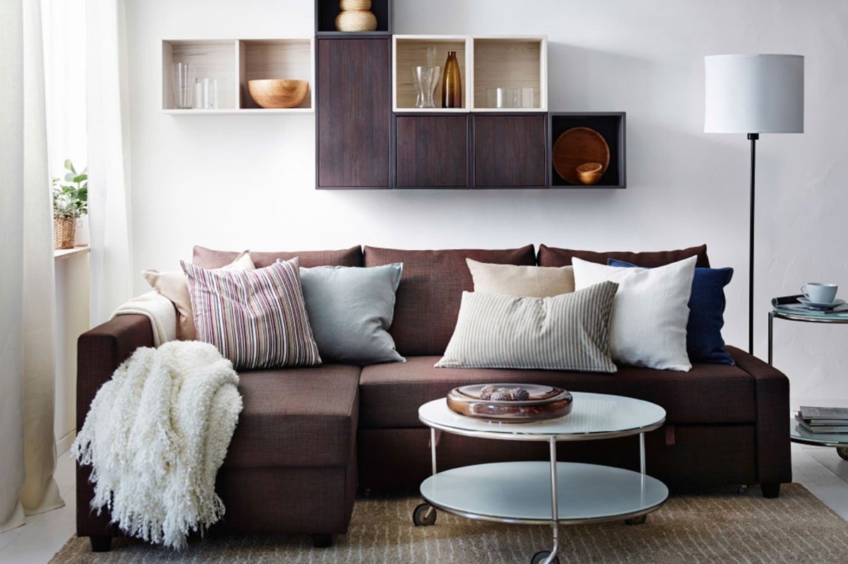 Коричневый диван ikea в интерьере