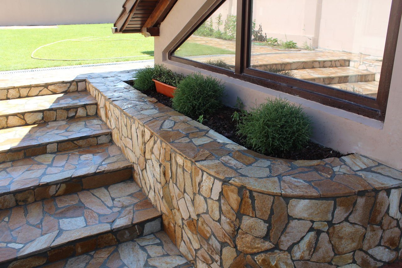 Отделка цоколя плитняком