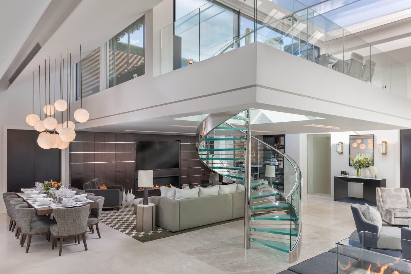 Интерьер двухуровневой гостиной
