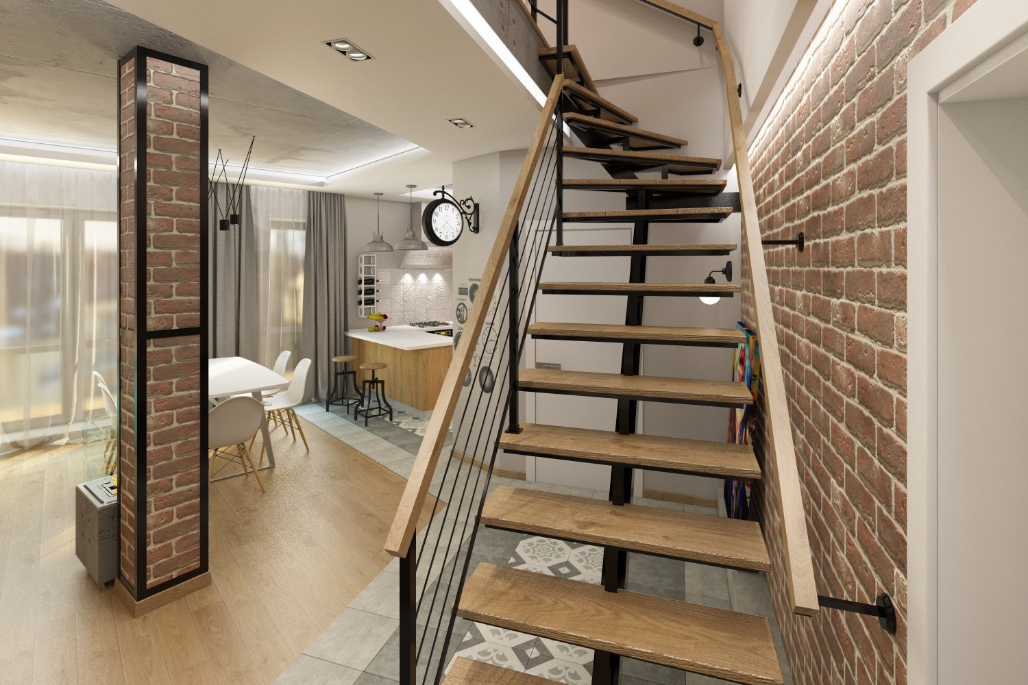 Лестница в стиле Сканди лофт