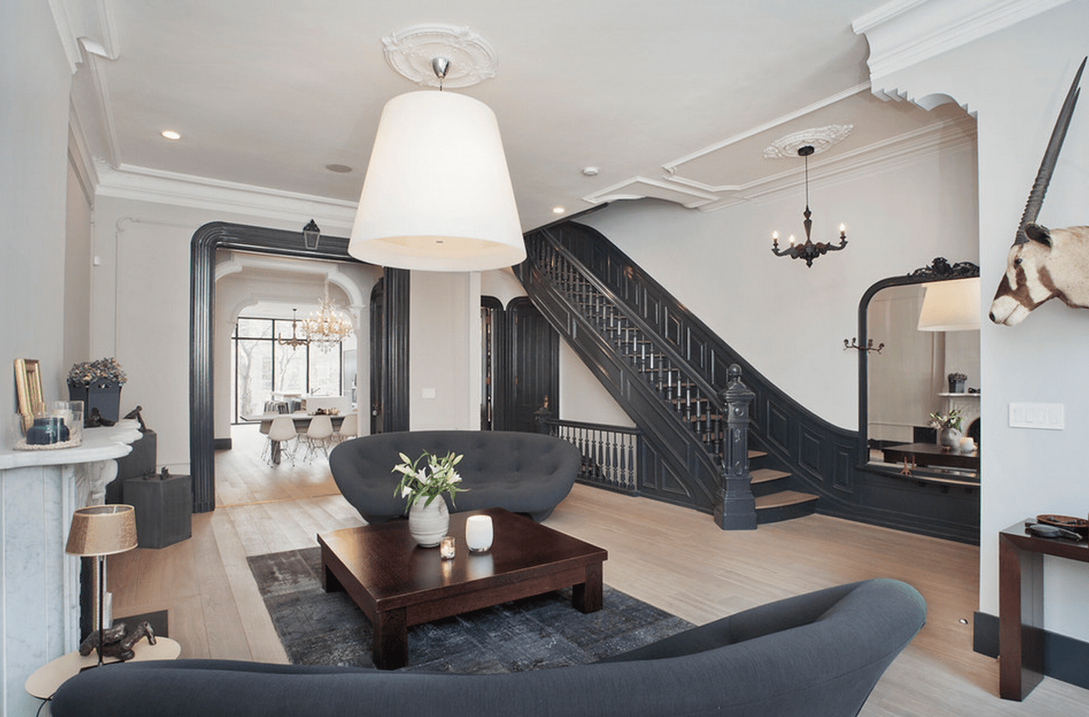Гостиная с лестницей