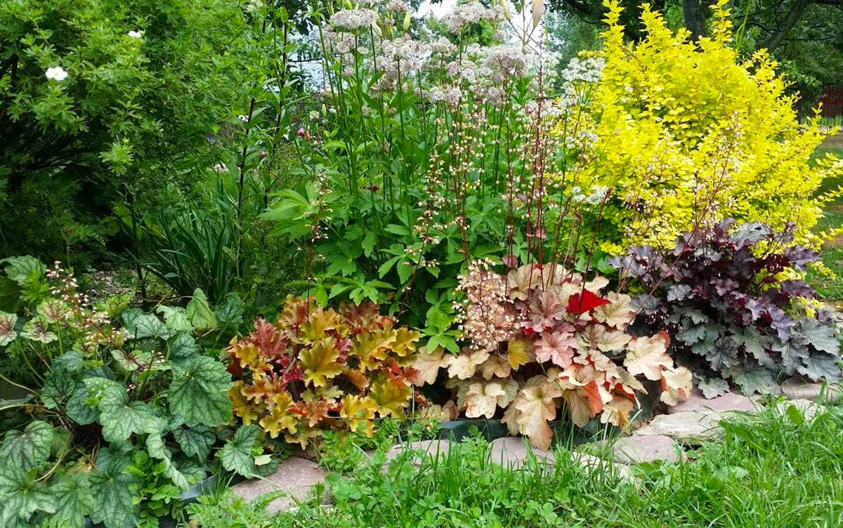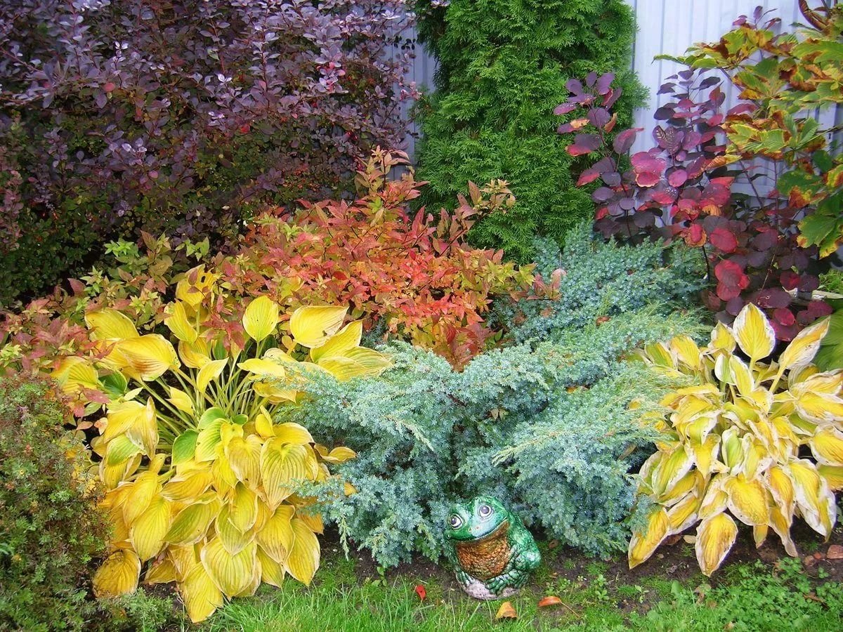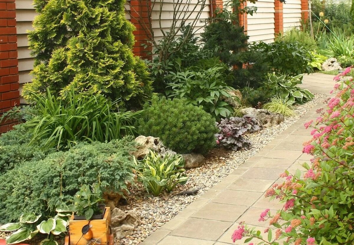 Пузыреплодник с хвойными в ландшафтном дизайне