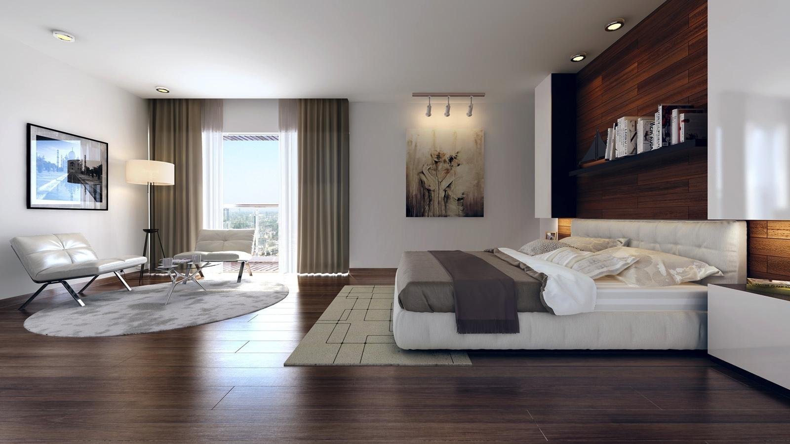 Спальня с темным ламинатом