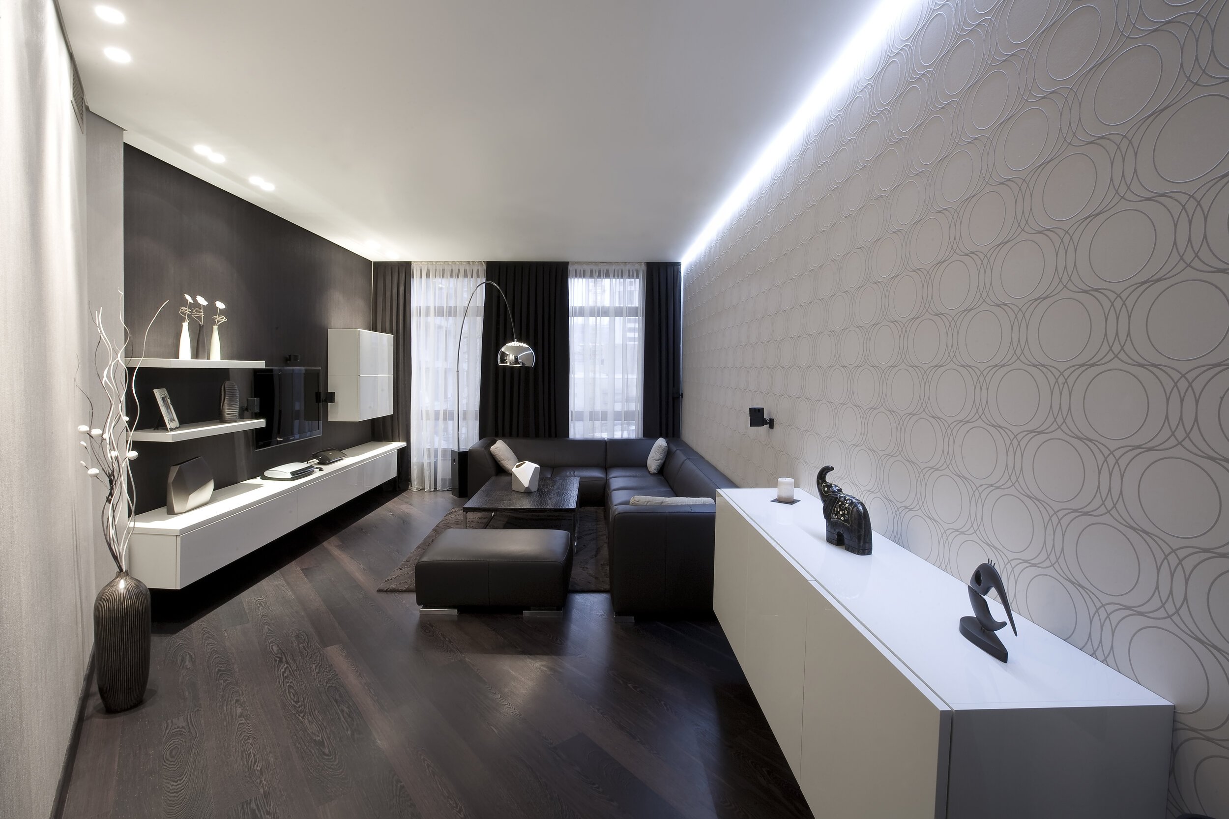 Обои в зал черно белые