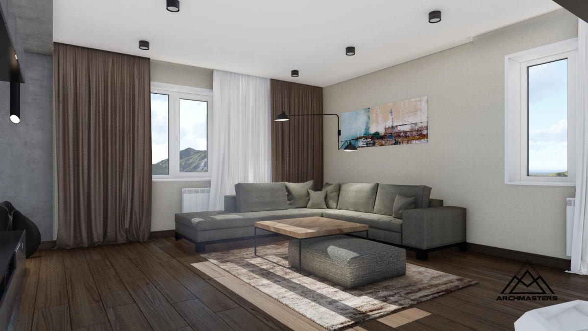 Гостиная с двумя окнами