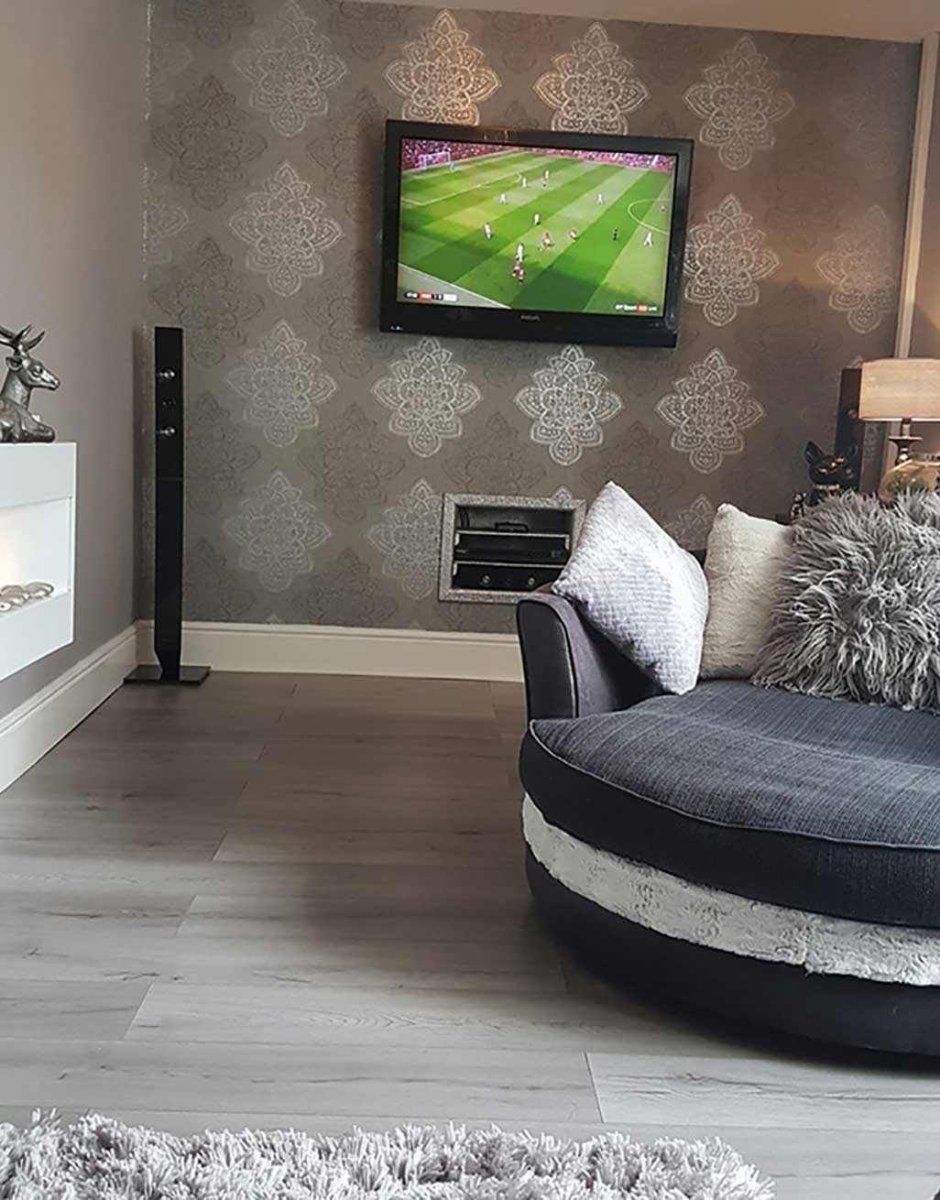 Серый ламинат на стене