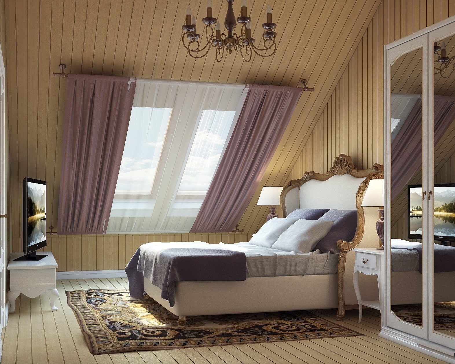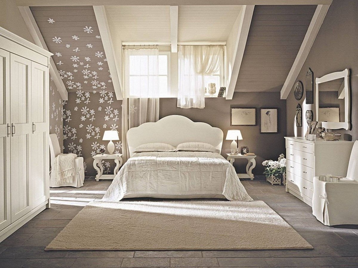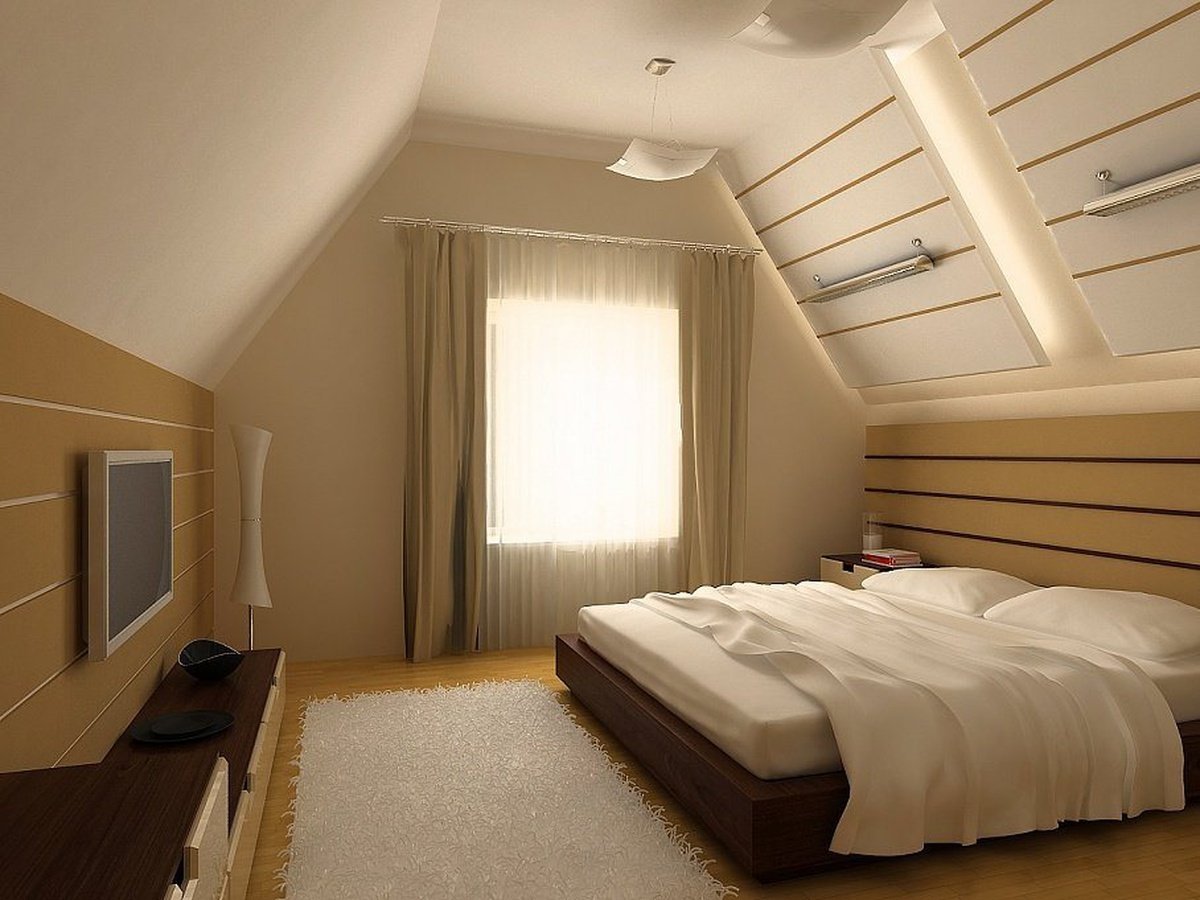 Интерьер мансардной спальни