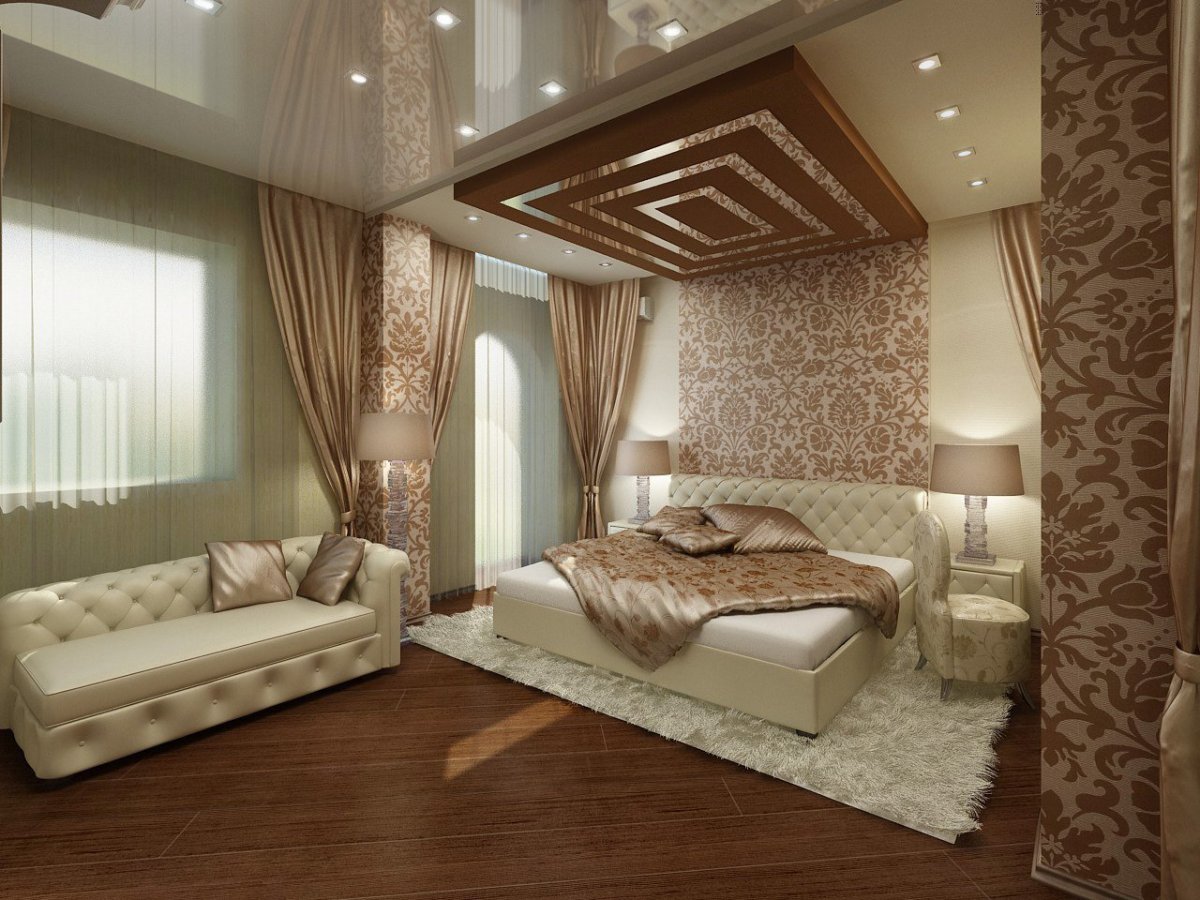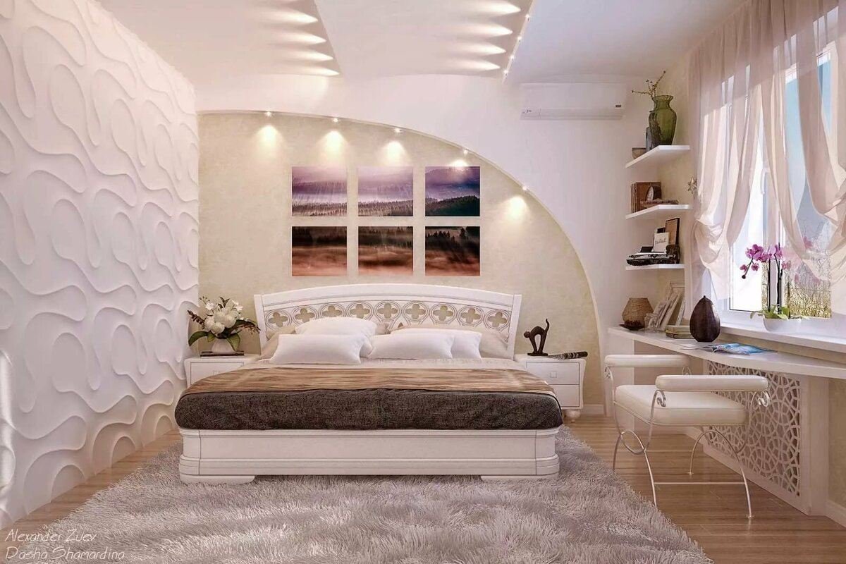 Гипсокартон в интерьере спальни