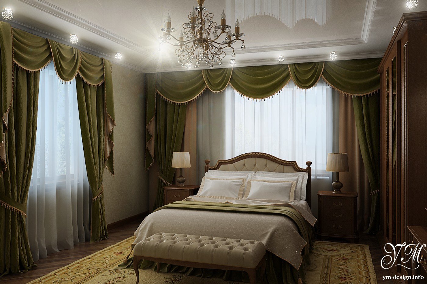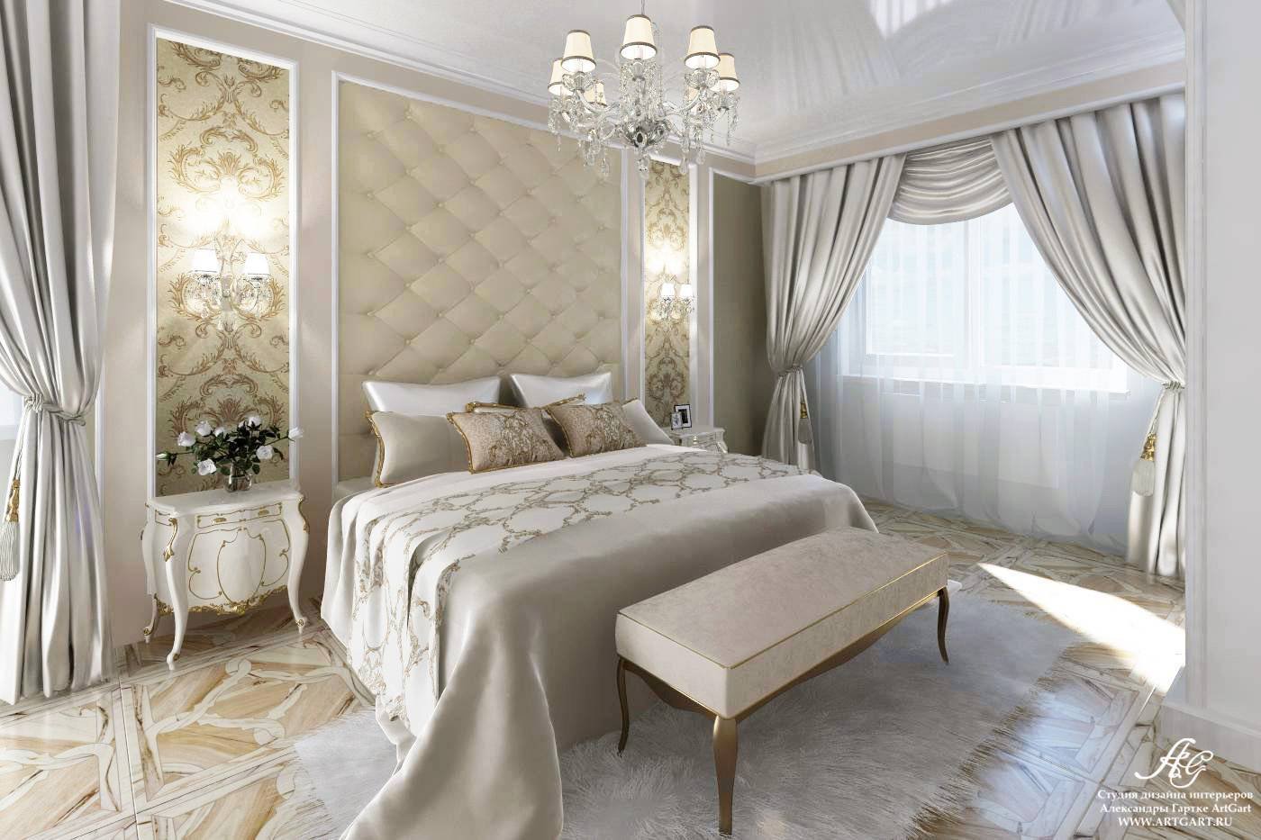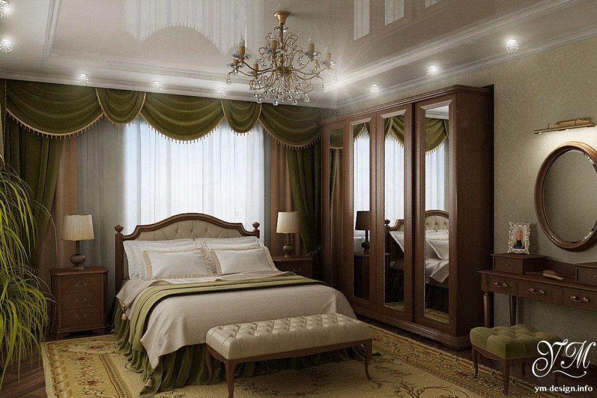 Спальни в модных классическом стиле