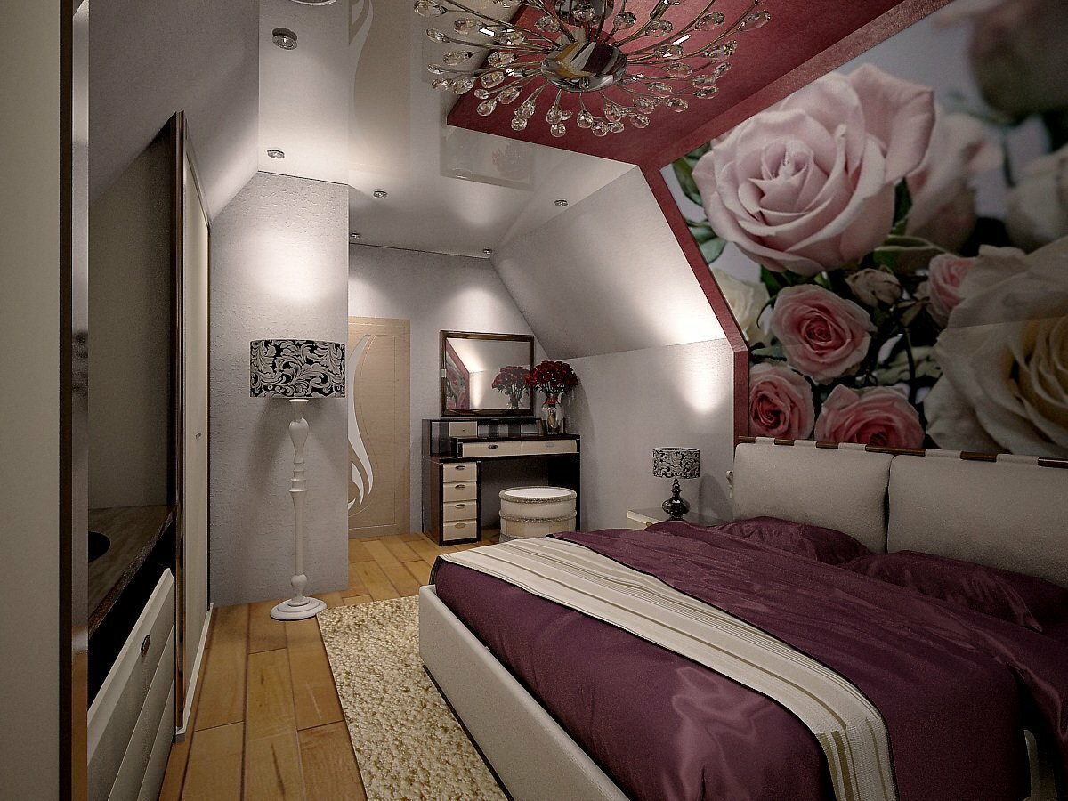 Спальня с мансардным потолком