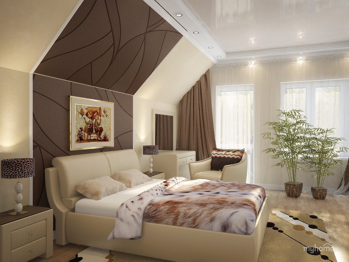 Интерьер спальни на мансарде