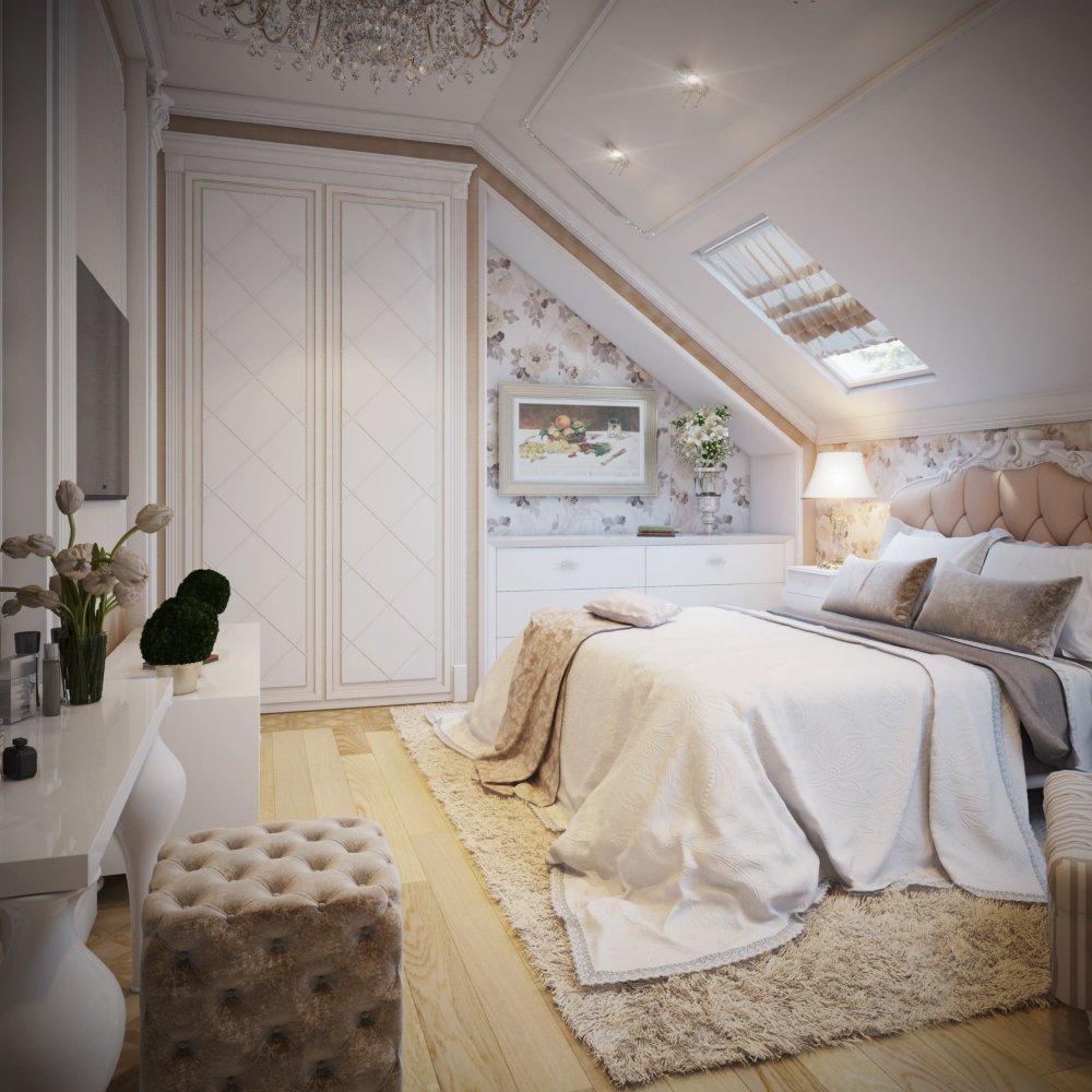 Спальня на мансарде в стиле современной классики