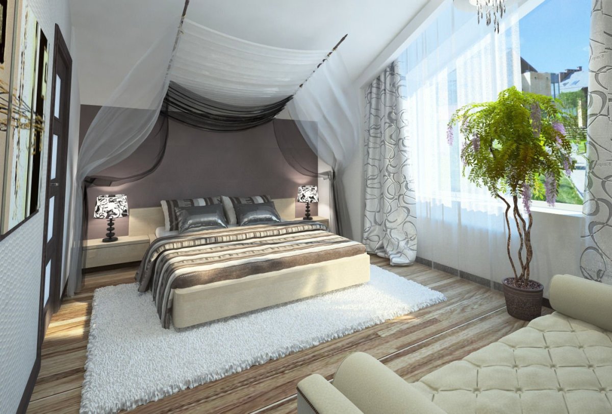 Спальня на мансарде в современном стиле